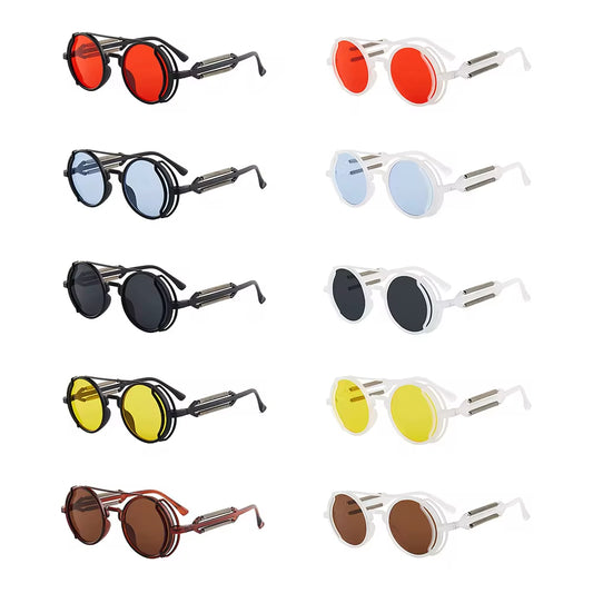 Gothic Style Steampunk Sunglasses Double Spring Temples round Sunglasses UV400 Protection Men'S Eyewear Trendy Punk Sun Glasses
