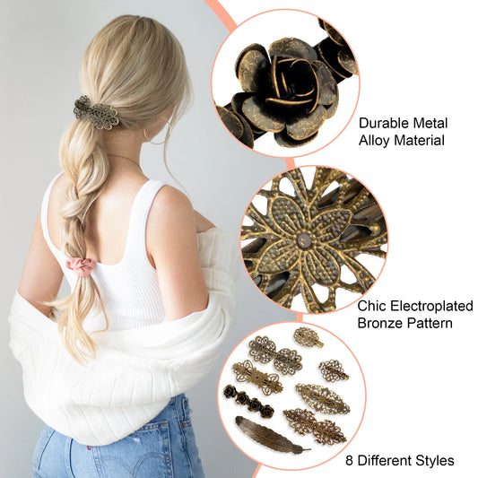 8Pcs Vintage Metal Hair Clips, Bronze Retro French Barrettes, Geometric Hollow Hair Pins for Women Girls, Hair Styling Accessories