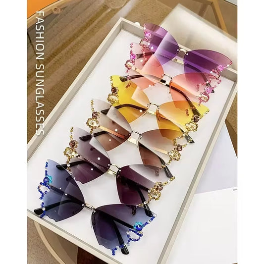 Luxury Diamond Butterfly Sunglasses Women Brand Y2K Vintage Rimless Oversized Sun Glasses Ladies Eyewear