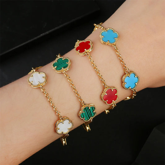 2023 Hot Selling Five Leaf Flower Bracelet Natural Stone Malachite Shell Flower Bracelet 11 Colors Ladies Charm Jewelry Bracelet